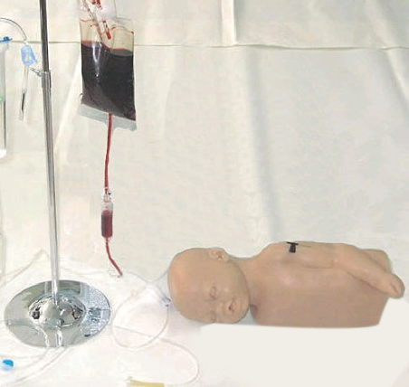 1、仿真婴儿侧面头部及带有手臂半身设计,并有婴儿头皮主要静脉血管系统,